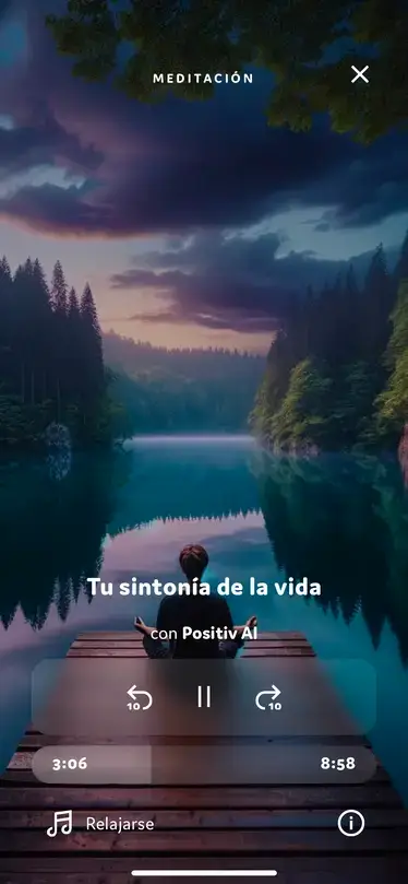 El PositivPRO es una aplicación de meditación y desarrollo personal que utiliza inteligencia artificial para generar una Sintonía de la Vida personalizada, además de ofrecer docenas de bandas sonoras y meditaciones guiadas orientadas al autodesarrollo en cada etapa del ciclo RISE. Te ayuda a integrar tus metas diarias con prácticas de meditación, haciendo un seguimiento de tu progreso y ajustándolas según sea necesario.